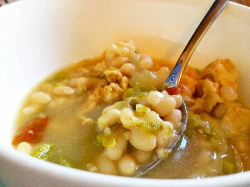 - Chili: Cooked lima beans 1L chicken broth 500ml water 200g chopped raw chicken 1 tablespoon granulated garlic 1 tablespoon minced onion 1 tsp ground cumin 1 tsp mild chili powder 1 tsp dried oregano 300g chopped frozen/thawed chopped green chili peppers